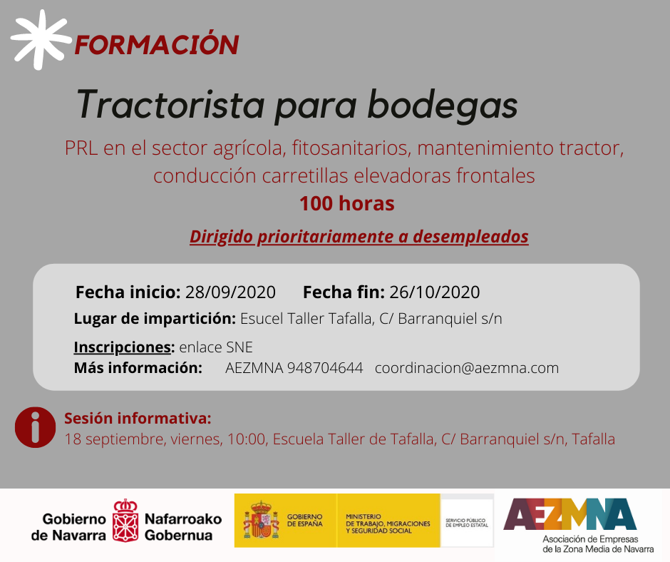 Cómo en ejercicios anteriores la Asociación va a desarrollar la acción Incorporación de Perfiles Profesionales de Tractorirsta para Bodegas, proyecto subvencionado por Servicio Navarro de Empleo